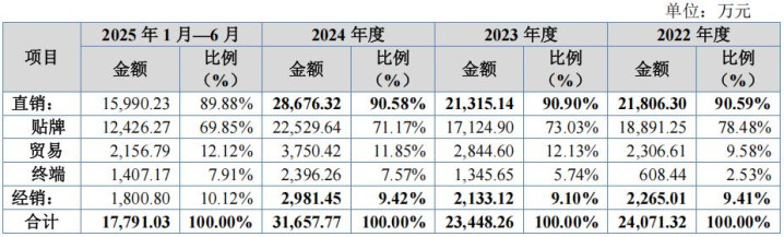 普昂医疗客户主要为境内外医疗器械品牌商、医疗器械流通企业、医疗器械生产厂家等,公司产品主要以贴牌生产的方式销售给下游客户,报告期内公司贴牌销售模式占主营业务收入的比例分别为78.48%、73.03%、71.17%、69.85%;公司境内自有品牌销售占主营业务收入的比例分别为6.02%、9.55%、11.58%、13.17%。